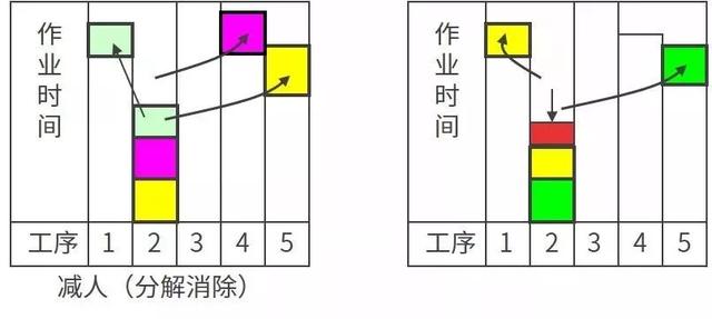 同樣的產品,因工序組合及布局的不同導致平衡率的差異。平衡率較差時,需反思工序規劃的合理性。